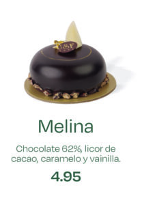 Cremoso vainilla, salsa de caramelo, mousse de chocolate negro y glaseado de chocolate.